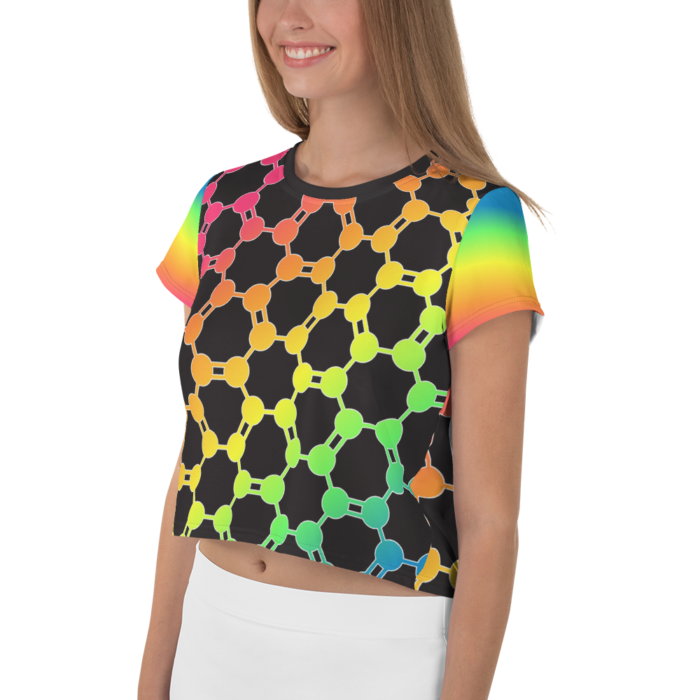 Looking for you next wardrobe favorite? Well, look no further because this crop tee is printed and sewn to fit you just right. To top that off, the original all-over design is definitely worth showing off, so don't hesitate to own one of these tees - they're meant to be adored.