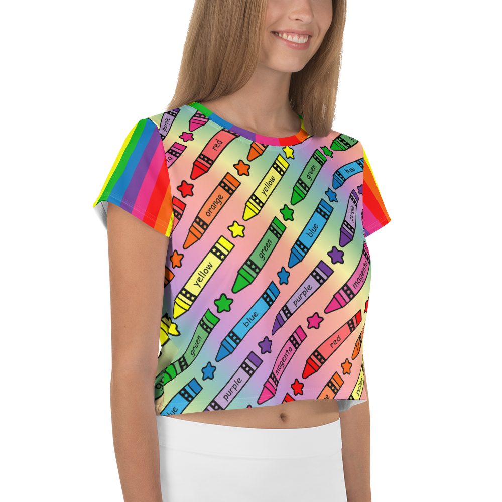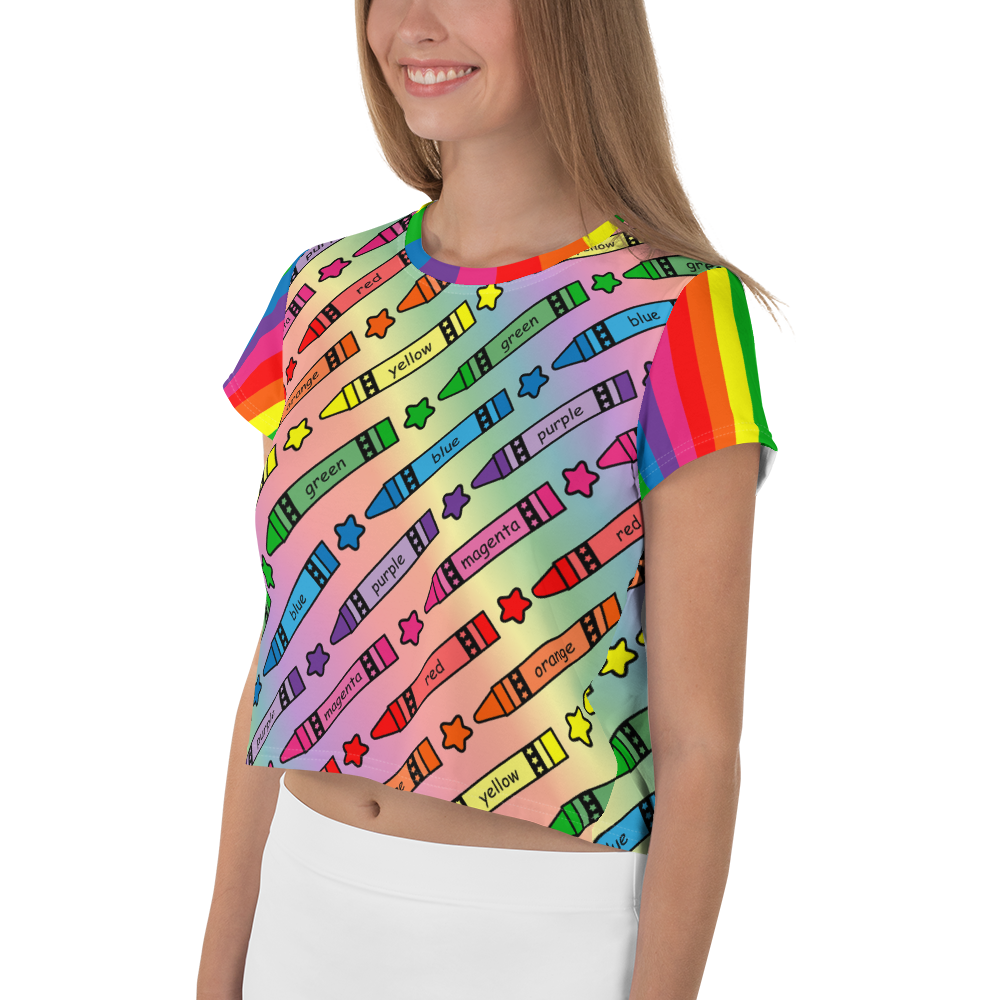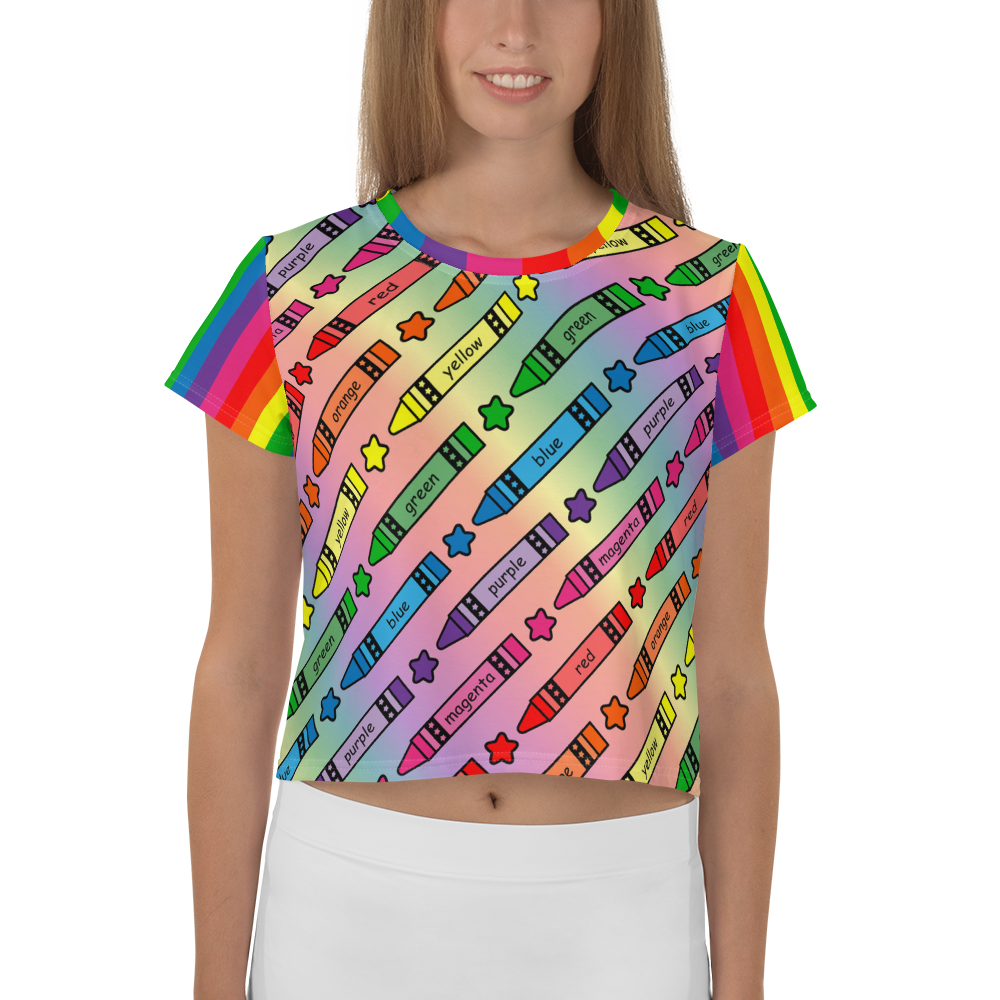 Looking for you next wardrobe favorite? Well, look no further because this crop tee is printed and sewn to fit you just right. To top that off, the original all-over design is definitely worth showing off, so don't hesitate to own one of these tees - they're meant to be adored.