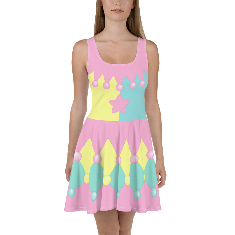 pastel pink/yellow/blue jester dress