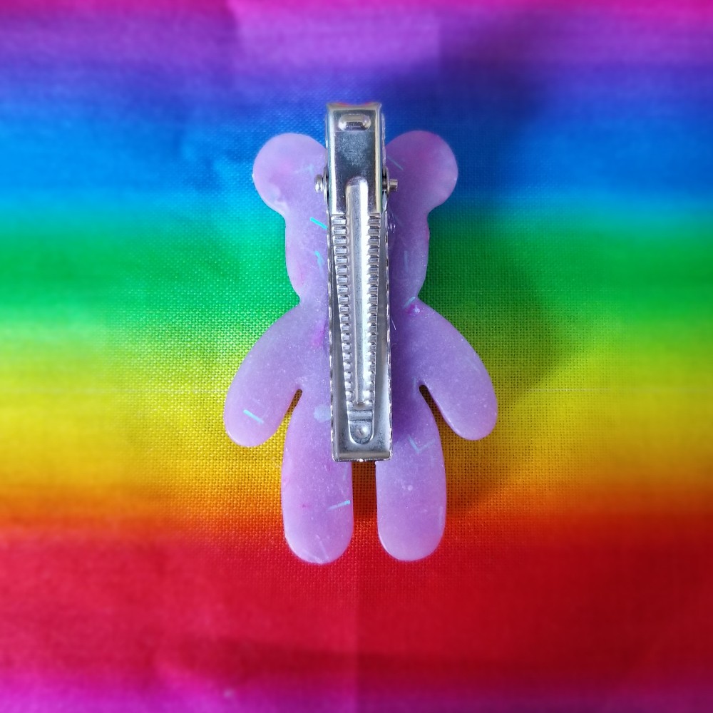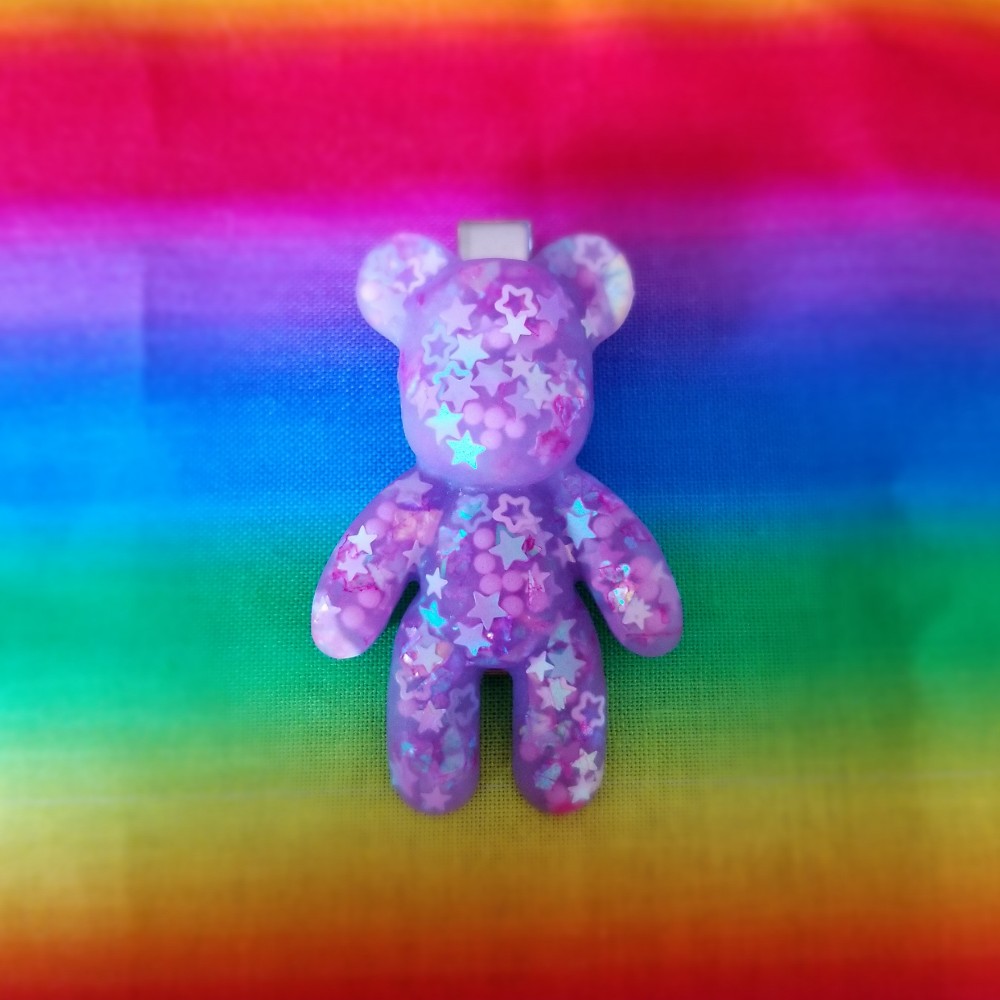 This bear is about 2" x 1" and has a purple base with TONS of pastel pink and purple glitter