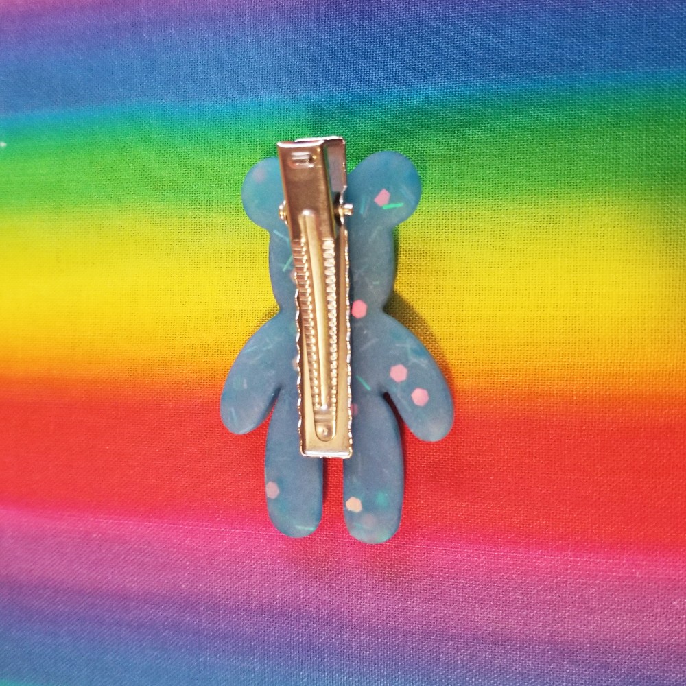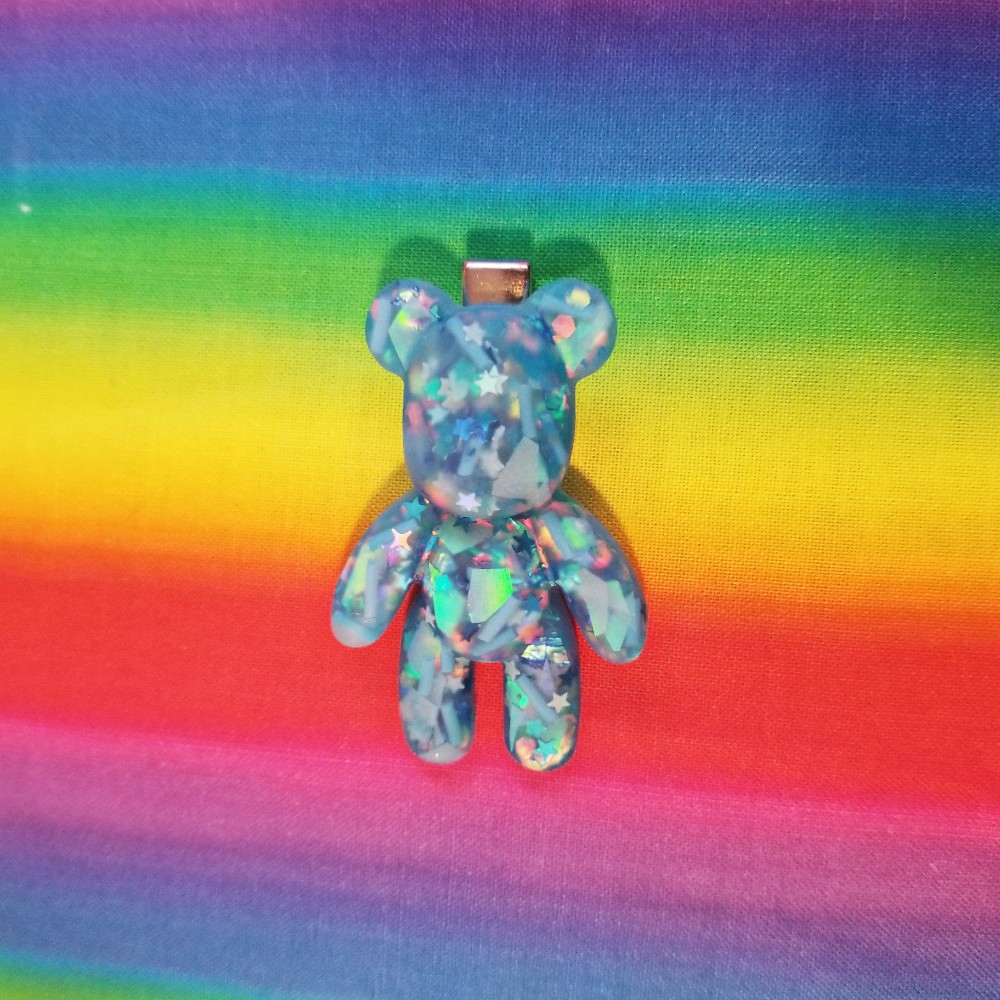 This bear is about 1" x 2" and features a mix of blue holographic confetti and sprinkles on a blue base
