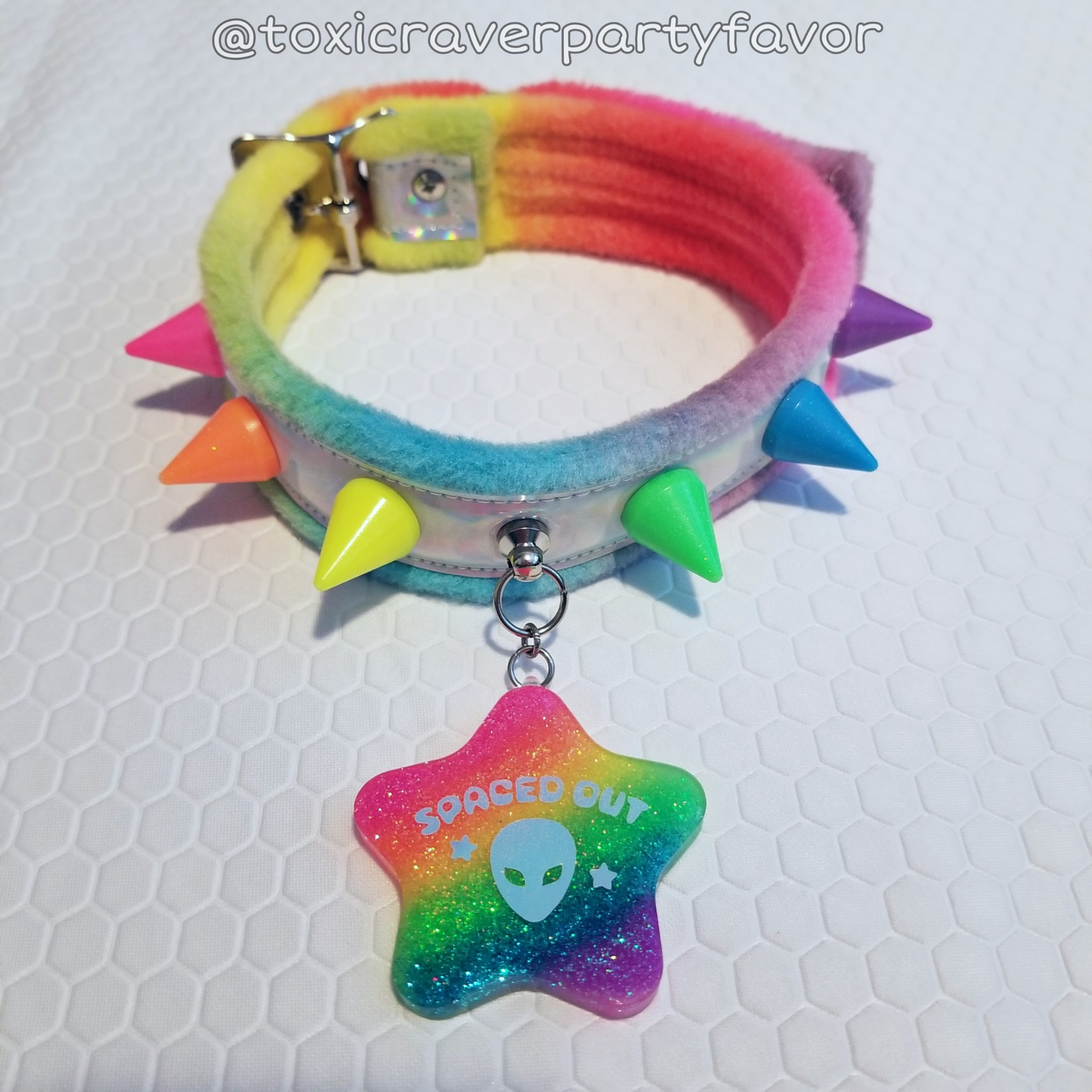 neon rainbow spaced out collar