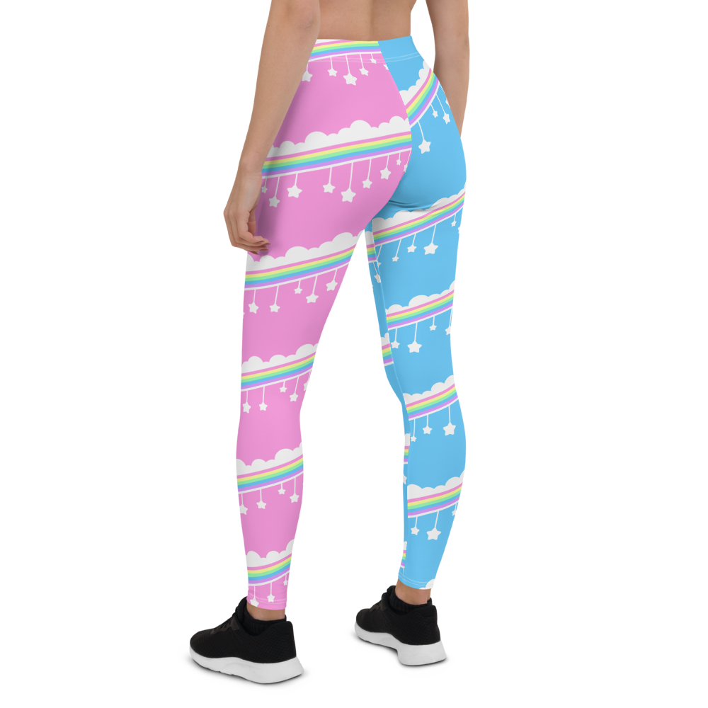 pink and blue rainbow cloud leggings